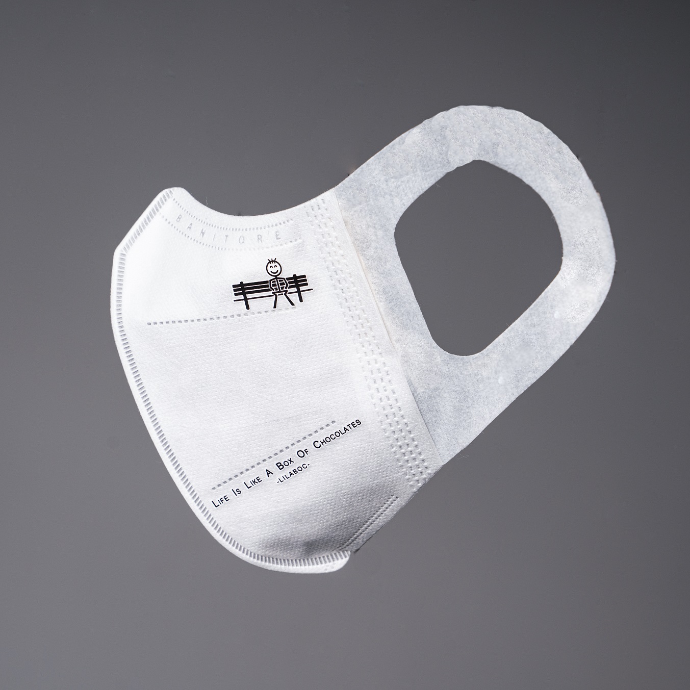 Banitore x LILABOC Collection 的 3D Medical Mask 一盒有共20片,包含型格黑白兩色,分別有5片白色及15片黑色,口罩上印有 LILABOC Logo 以及品牌理念「Life Is Like A Box Of Chocolates」。口罩於無塵車間 (ISO 8級別) 生產的三層一次性掛耳式口罩,實行「protecting you all day all night」。