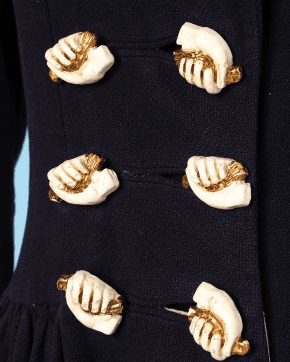 Elsa Schiaparelli 剛成立個人品牌的早期曾設計出一系列以以尖狀及墊襯、強調肩膀輪廓的獨特衣著,還以高而窄的腰線配搭拉長至膝蓋的下襬,這種獨特美學設計隨著時間演變成 80 年代很流行的「Power Suit」。