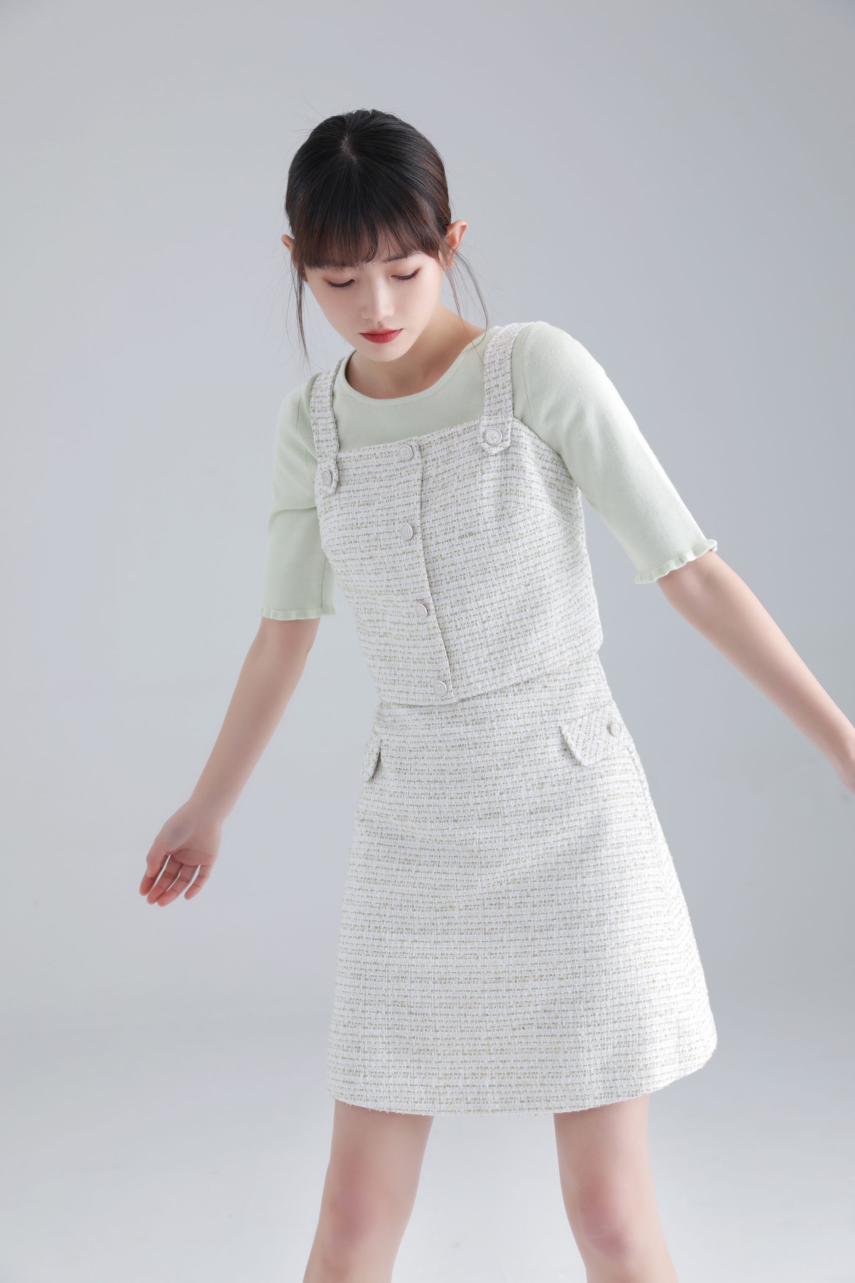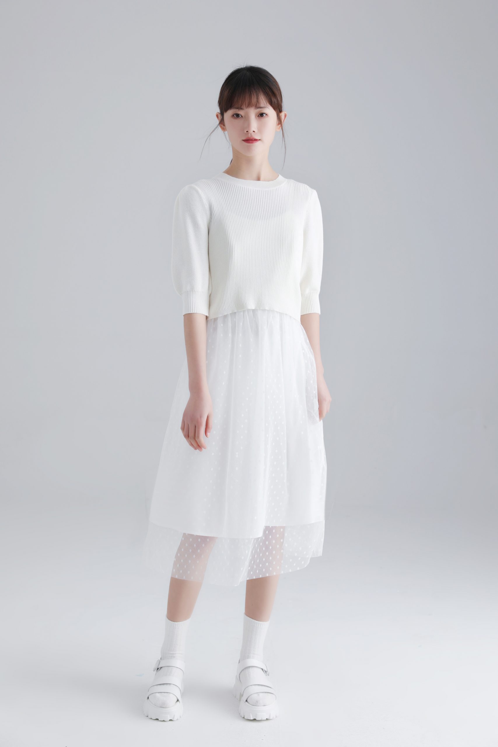 今季除了碎花上衣和連身裙引起關注外, LOUNGE PINK 的吊帶裙下身運用多層的波點密紗,也是今季的亮點。除此之外,今個系列也加入了不少以方領、V型繡花領的元素,復古又充滿可愛時尚感。另外,還有針織上衣或繡花娃娃領短袖襯衫,其中採用針織拼接梭織格仔面料的連身裙,舒適感十足,再配上淺棕和白色的經典撞色,無論是上班還是假日造型都能輕鬆駕馭。