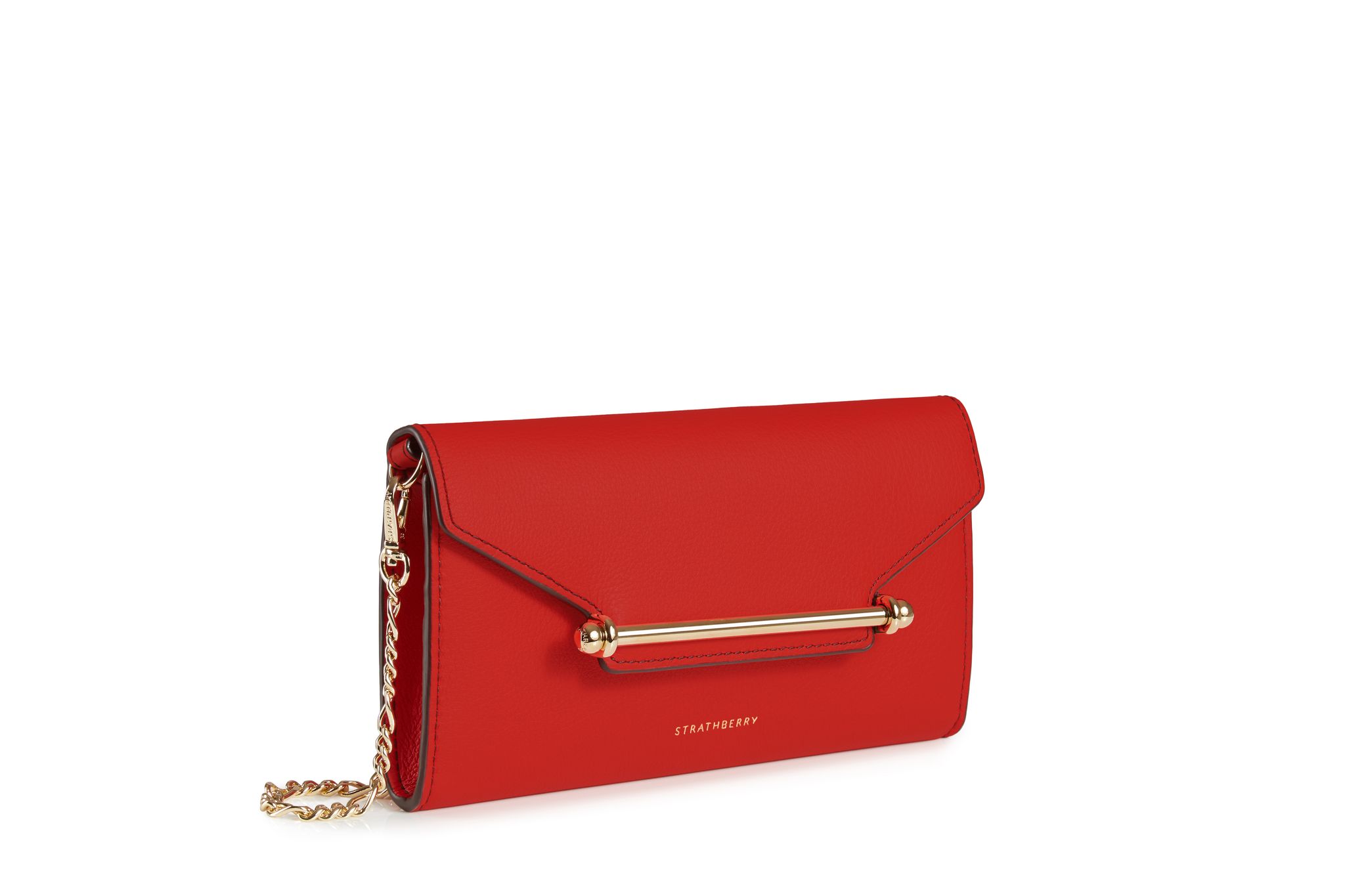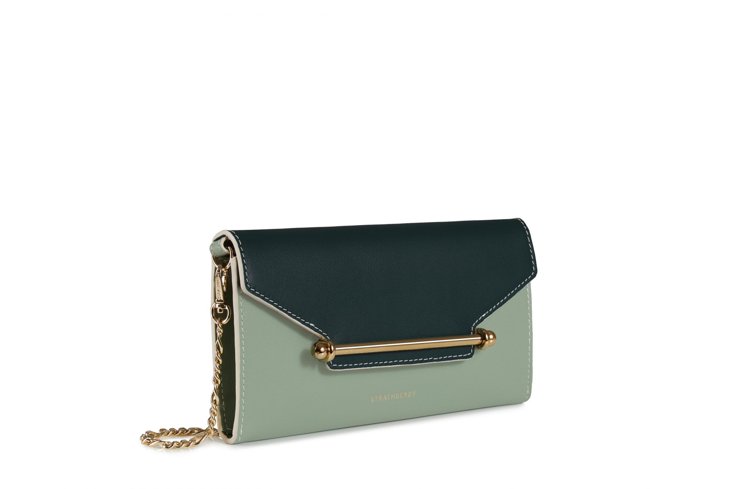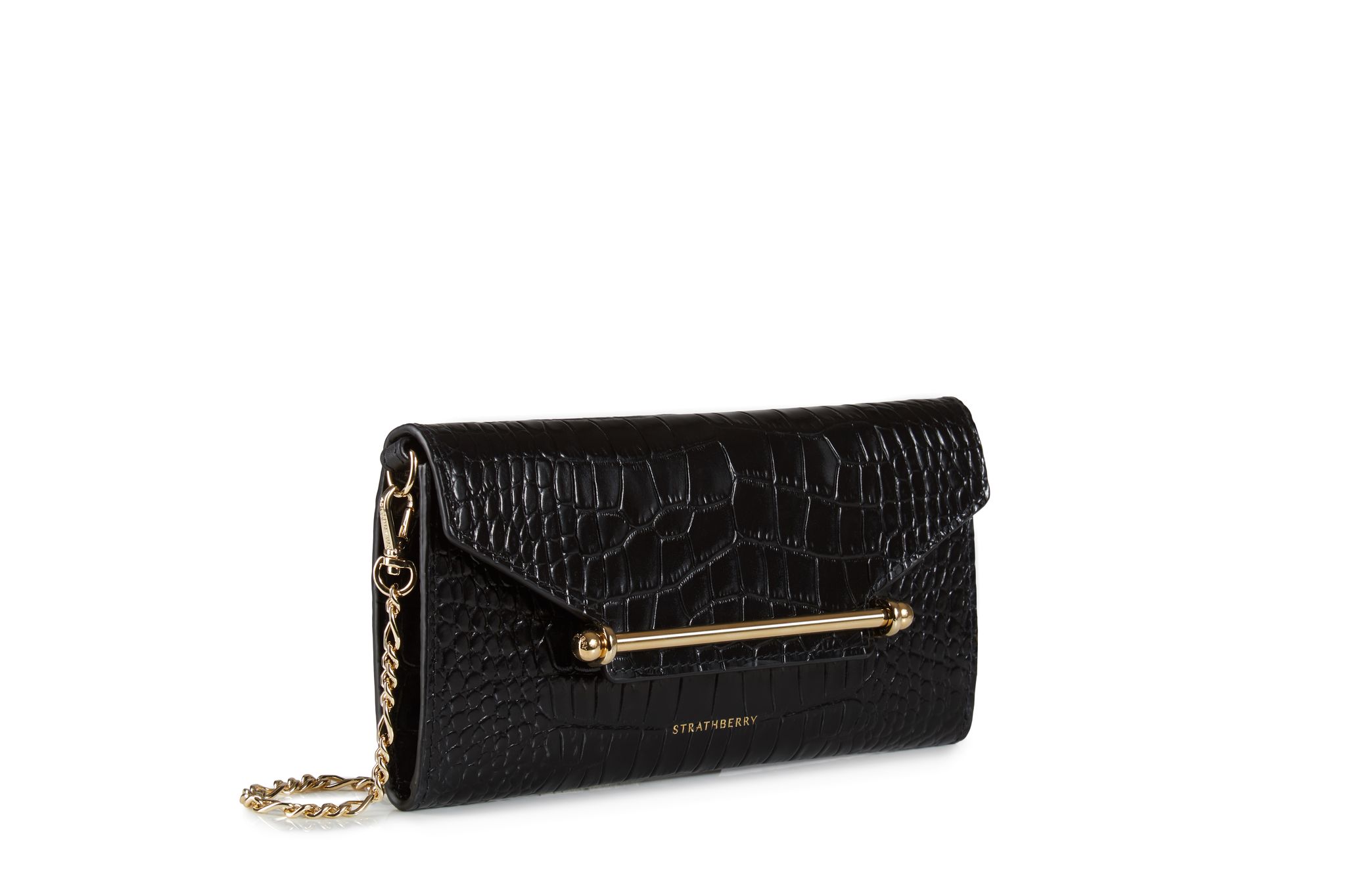 Strathberry 仿鱷魚紋手拿包低調而別緻,是結構性的手拿包款式,具有品牌標誌性特徵的金屬橫桿閉合開關,其設計更以愛丁堡最具標誌性的奢侈品購物勝地Multrees Walk的名字命名,旨在慶祝 Strathberry 品牌於 Multrees Walk 旗艦店開幕。