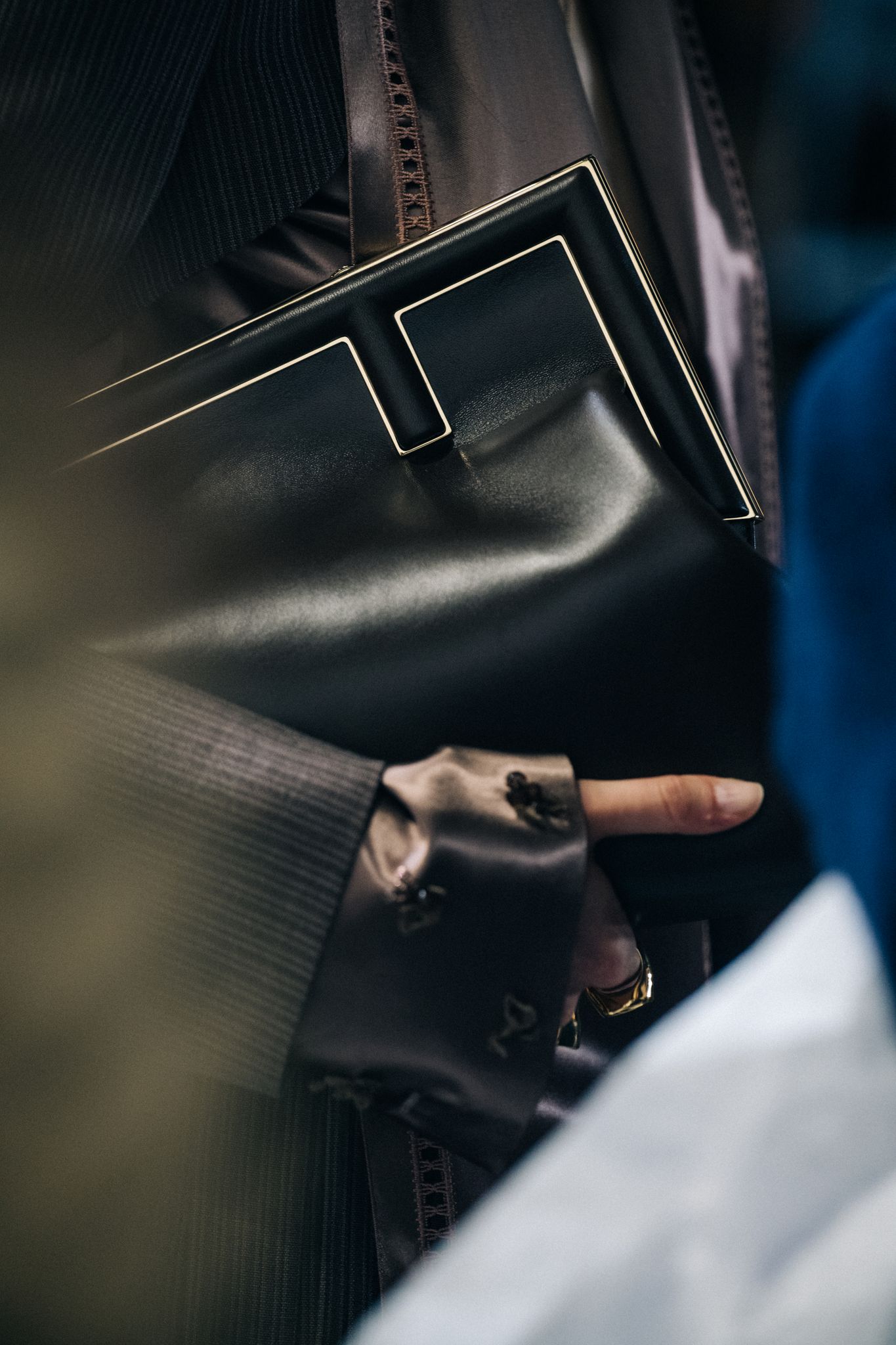 不過說到今季最矚目的單品,莫過於這款全新設計的「FENDI First 手拿包」,它把 FENDI First 的概念演繹成可轉變的全新配飾,令品牌字母圖案幻化成柔軟手提包的飾框,以皮革鑲嵌金屬框呈現,而且手袋備有眾多版本,選用納帕軟皮、蟒蛇皮、皮草、羊絨皮及Karligraphy字母圖案法蘭絨,推出可收納日常必需品的中號以及小號,最大的容量可以容納平板電腦,最小可以當作珠寶佩戴的小包,並配飾可拆除及可調校的肩帶,提供各種佩戴方式。