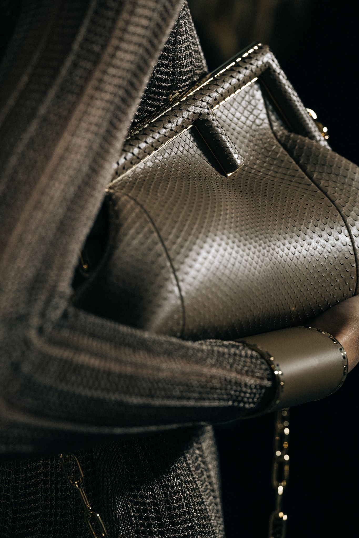 除此之外,今季 Fendi 也邀請了珠寶設計師 Delfina Delettrez Fendi,她在 19 歲已自立門戶,過去也曾多次被 Fendi 邀請設計一系列大膽、年輕且充滿創意的珠寶系列,如金色鍊條串起印有Karligraphy字樣的封蠟吊墜項鍊、以扣環 FF Logo 為靈感且需要撥動 Fendi 字樣才能打開的掛鎖、Selleria 皮革且鑲有金屬滾邊細節的 Cuff 袖口等等。